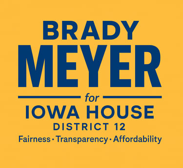 A lifelong resident of Holstein, Iowa. Brady currently manages the Holstein State Theatre and coaches the Ridge View High School Esports team. He is running for office because of his compassion and want for a better state. A state that works FOR the people, BY the people.
